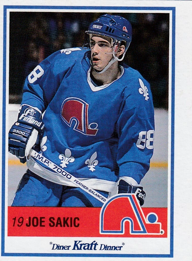 Comme par exemple sur ces cartes de hockey de Serge Bernier. On est trop éloigné pour bien y voir les fleur de lys donc c'est peu concluant. Euh... en fait je dirais plus «La» fleur de lys puisqu'elle semble totalement absente de l'épaule droite du joueur.